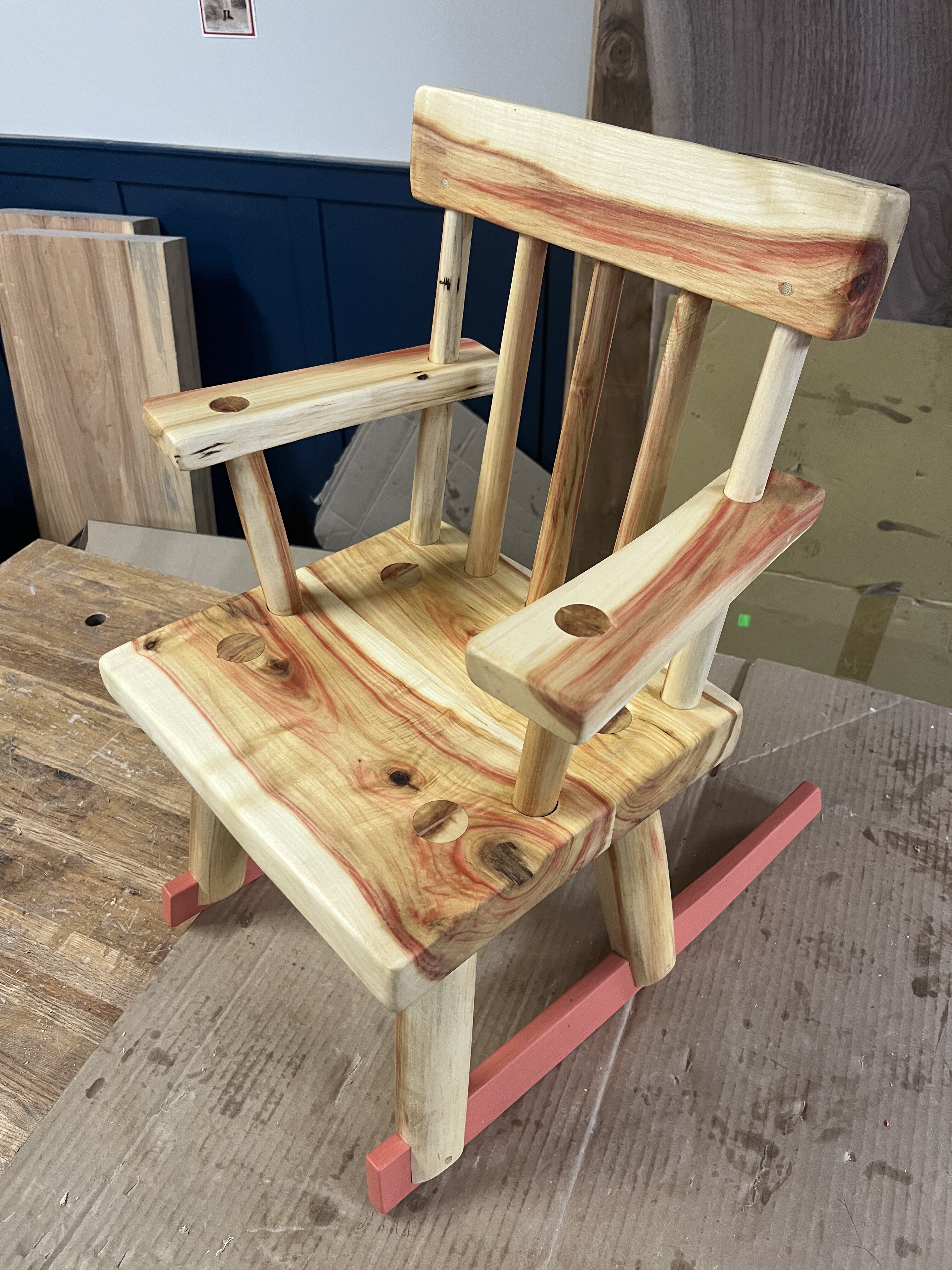 I first became interested in branching out from creating items a person can hold to building items that can hold a person after seeing the stools and chairs made by Jogge Sundqvist. I was inspired by his ability to bring his love of color and whimsy that give his spoons so much character to larger, but equally functional items.